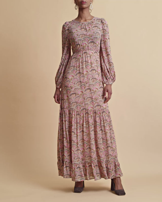 • Fitted waistline and long sleeves for balanced grace and style