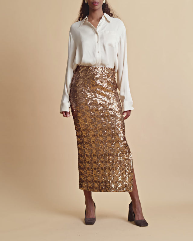 Introducing our captivating Sequins Skirt, designed to make you shine with every step. This elegant skirt offers the perfect blend of glamour and sophistication.